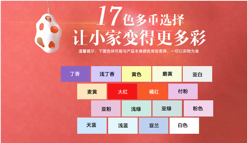 顏色:白色、黃色、耦荷、果綠、粉紅、天藍(lán)等17色多重選擇